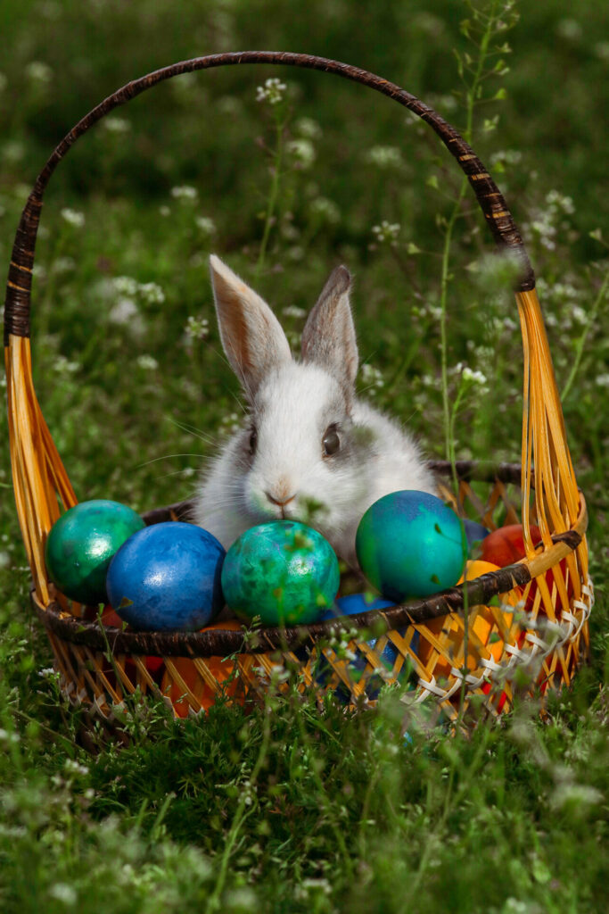 Am făcut o primă ședință foto în coșulețe, între flori, de Paște, cu cei doi. Cu greu am prins un moment perfect. Nu știu dacă ați încercat vreodată să faceți poze la animăluțe, e o provocare. Dar la iepuri? Succes!