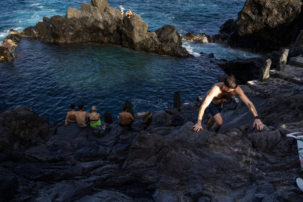 Se făcea că eram cu camera de filmat la ochi, zona era la Charco de la Laja. Aici se află o piscină naturală, una din sutele de piscine naturale. Se formează la contactul lavei cu oceanul, sunt perfecte de lenevit, te protejează, sau nu, de valuri. Piscina era superbă, curenții oceanului aruncau valuri ocazional, un spectacol vizual minunat. Doar că atunci când veneau curenții cu valuri, aruncau multă apă în piscină. Era o zonă safe, în care nu te trăgea nimic, nicăieri. Acolo, oricât de mare era valul, erai probabil safe. Ca să fiu mai descriptiv, acolo unde nu era safe, curenții veneau cu putere, apa se ridica, şi aveai mari șanse să zbori în ocean. Erai practic ca în mașina de spălat.