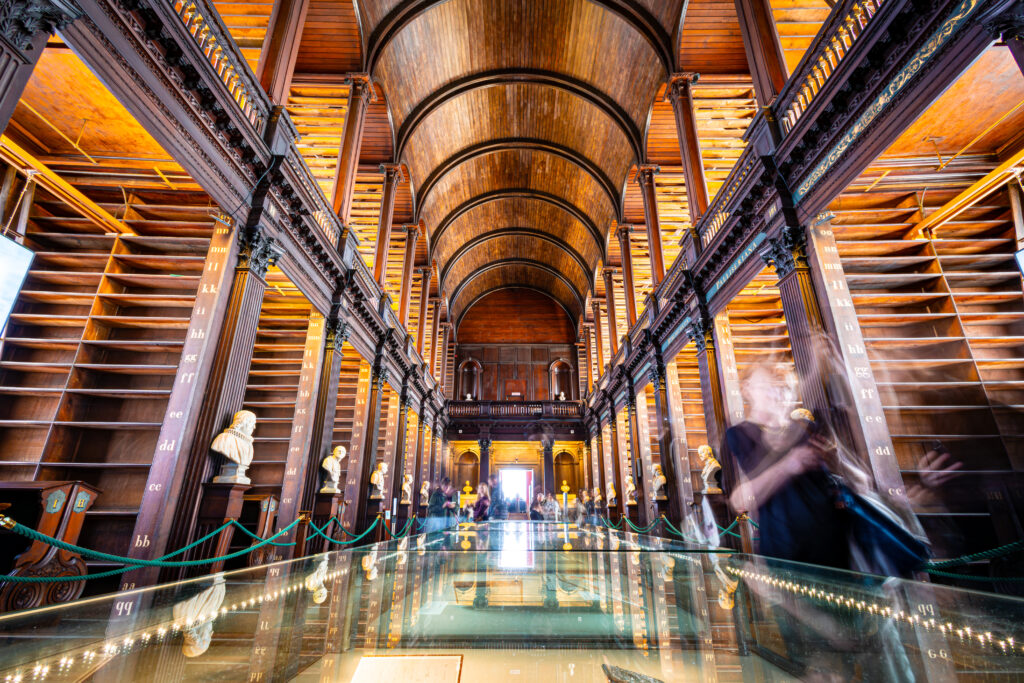 Am luat-o de dimineață. Prima oprire Trinity College. Aici ar trebui să găsim Book of Kells, o mare și faimoasă carte religioasă, apoi the Long Room, o locație instagramabilă, că doar oameni suntem. Long room duce cu platourile de filmare din Harry Potter. Am plătit regește 60 de euro pentru 20 minute de plimbat prin facultate. Am făcut și 2-3 poze, mai slow, să ne fantomim un pic. Un fel de Harry Potter când apărea Nearly Headless Nick. S-a încercat.