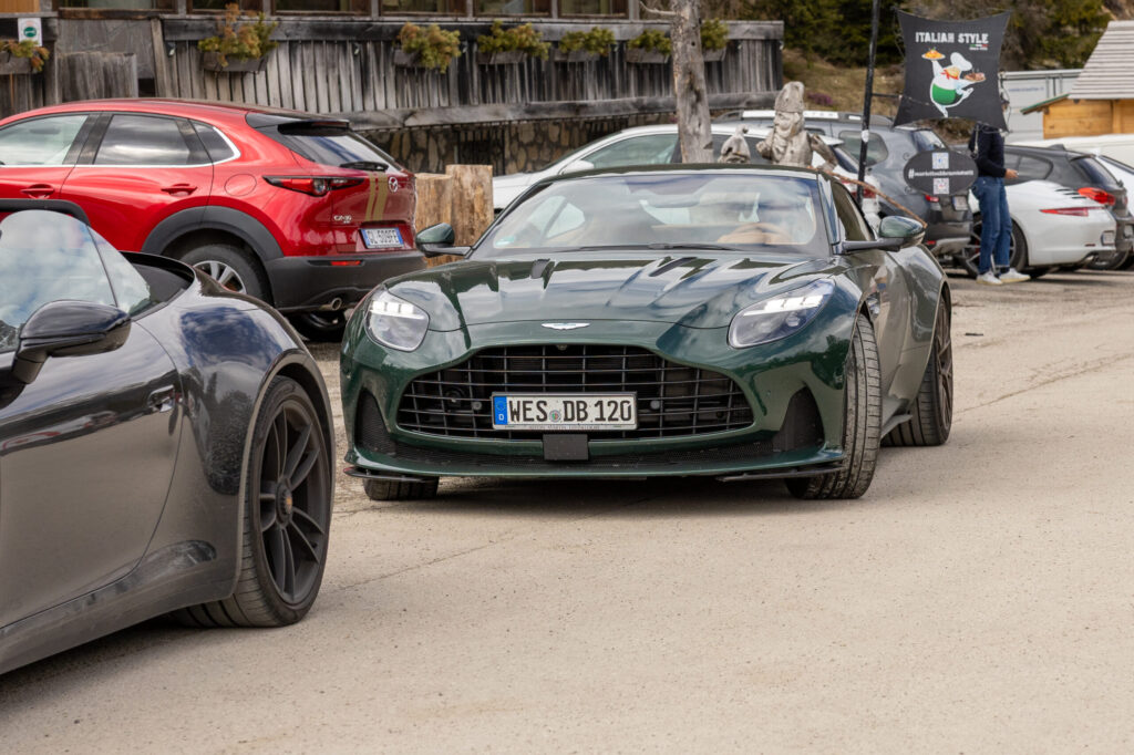 Încă de la Refuggio Auronzo am văzut un grup de 3 moși și-un moș mai tânăr, cu 4 mașini superbe. Un Aston Martin DB12 și 3×911 decapotabile. Au ieșit și ei ca băieții la munte. Ăsta mai tânăr era băiatu’ vreunuia dintre ei, el avea Aston Martin-ul, nou, verde, ce trebuie. Părea fătălău 100%, cred că niciunul din ăi bătrâni nu și l-au dorit acolo, dar sigur aveau acasă o băbuță care ar fi tras una după ceafă. Au călărit un pic mașinile, se auzeau în vale niște motoare ambalate. Tare bine cred că s-au distrat, cel puțin așa se vede din dronă. I-am filmat un pic deasupra lacului, că era ca în filme.