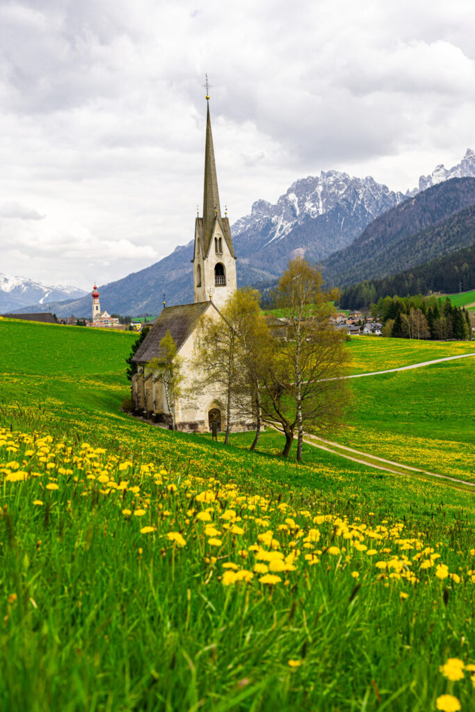 Am tras pe dreapta să căutăm niște biserici la Niederdorf / Villabassa. Orașele au denumire germană și abia apoi italiană. S-au ungurizat și italienii, îi au pe ai lor.