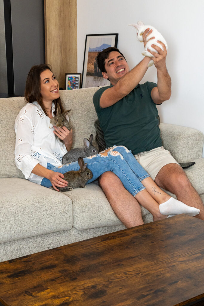 Distracția a început cu doi iepurași, Maria și Mihai, anul trecut. Au apărut de nicăieri mititeii, numai gata să fie îmbrățișați și chinuiți, smotociți. Ei au dat tonul. Tonul la ce ați putea zice. La ședințe foto și apoi… la alți iepuri…