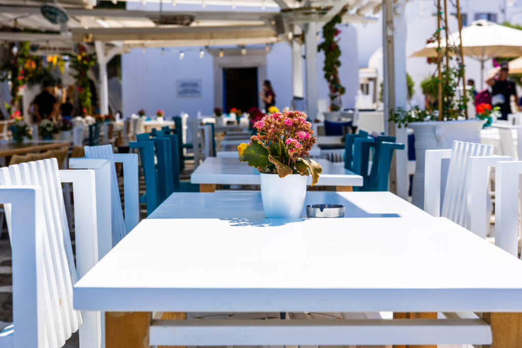 Probabil majoritatea oamenilor vin pentru distracție în Mykonos, și chiar ai cu ce. Dar dacă vrei să ajungi la cluburile astea trebuie și ceva planning. Noi fiind cumva în off-season, nu era bătaia așa mare, drept urmare nu am avut nevoie să rezervăm la restaurant. Adică am fi rezervat, dar patroana de la cazare ne-a zis că are ea pile, și dacă nu rezervăm e mai bine. Și dacă nu prindem loc, ne bagă ea pe combinații. Ce-mi place.