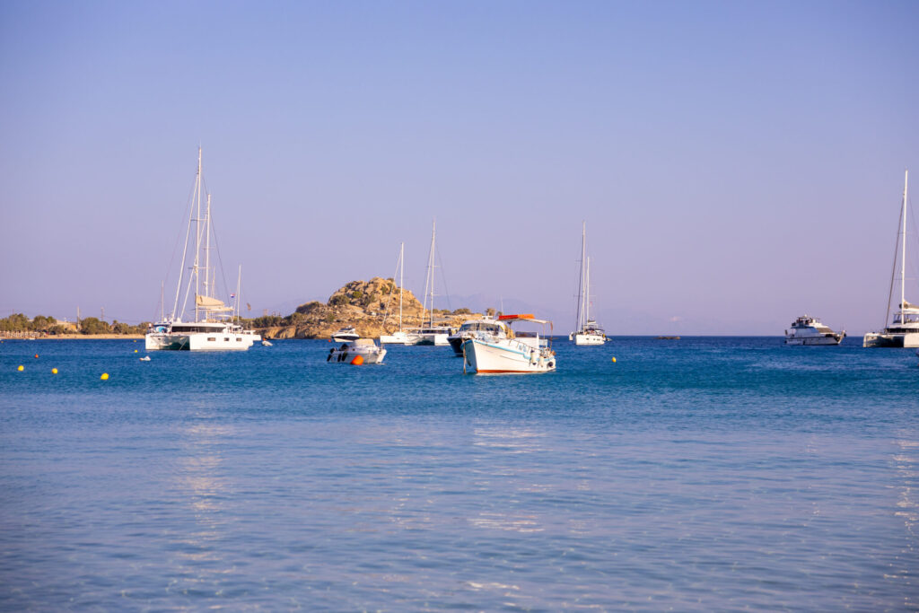 La Agios Stefanos plin de ferry și bărci. Ne-am clătit ochii la mastodonţi și ne-am întors la Ano Mera, la restaurantul care ne-a făcut cu ochiul.